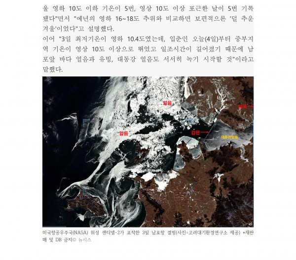 북한 남포항-대동강 결빙…고려대기환경硏 “운항 불가” - 뉴시스 (2026. 02. 04.) > Newspapers