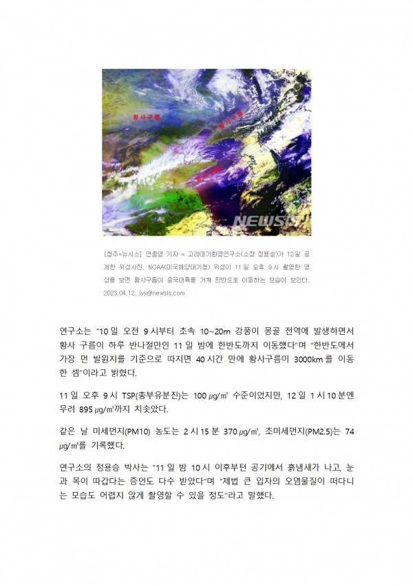 한반도 덮친 황사구름…몽골에서 하루 반나절 만에 상륙 - 뉴시스 (2023. 04. 12) > Newspapers